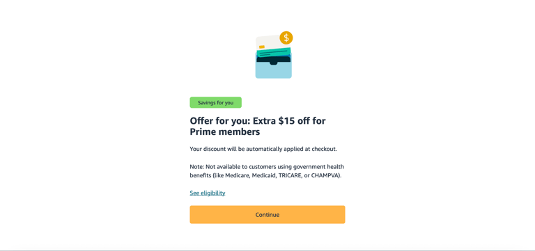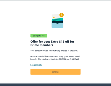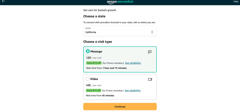 5) Click continue and answer medical questionnaire. (Extra $15 off for Prime members).
