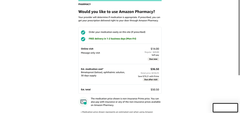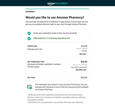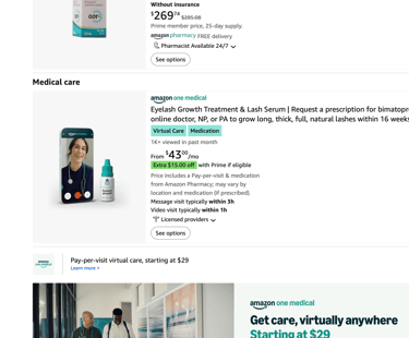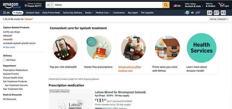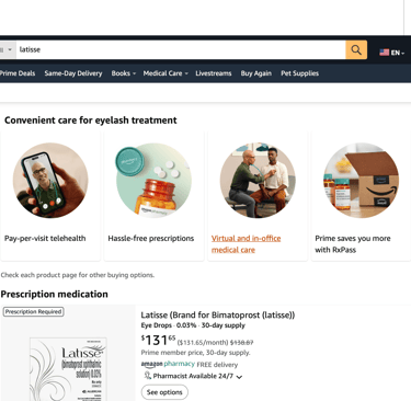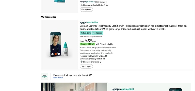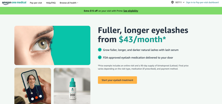 Here’s where things get exciting: Amazon has made getting Latisse easier than ever through Amazon One Medical. Instead of booking a traditional doctor’s appointment, you can complete a quick online visit for only $14, and then get a 30-day supply of Latisse for just $36. That means you can skip the hassle, save money, and start your lash growth journey right away.